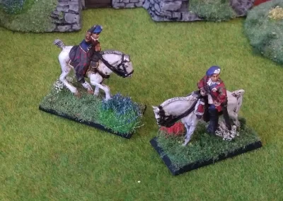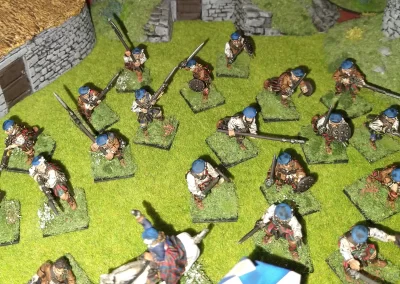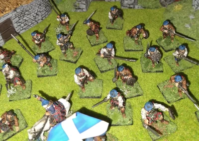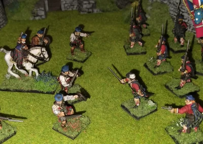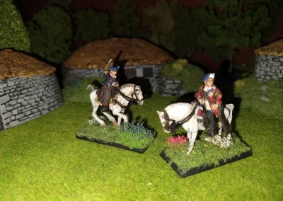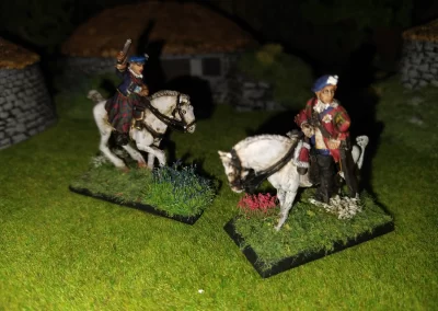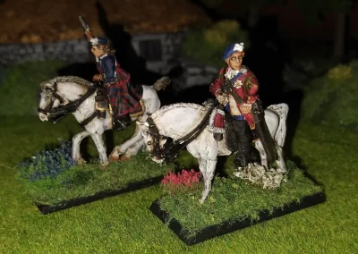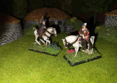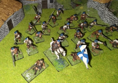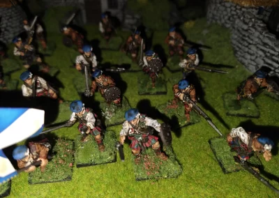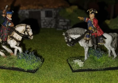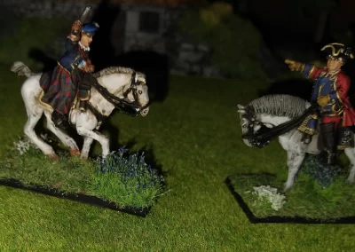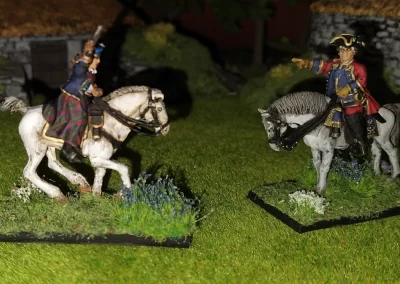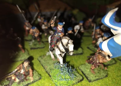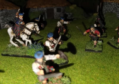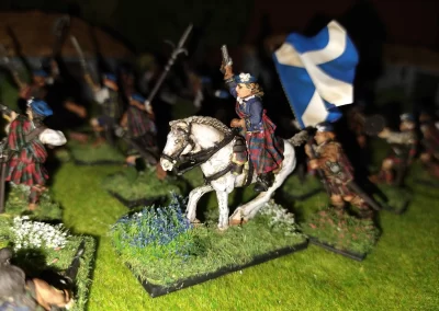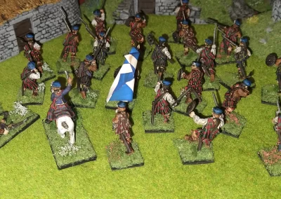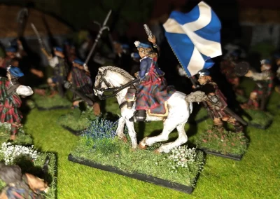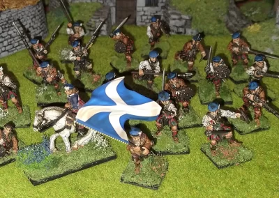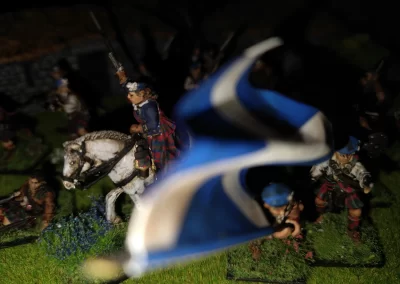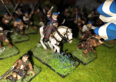 Když jsem maloval modely, využil jsem skutečnosti, že klan Chattan je spojenectví několika klanů (Mackintosh, Macpherson, Farquharson, MacGillivray a dalších), takže výběr klanových tartanů je pestrý. Takže jsem maloval takovou kombinaci, nakonec třeba takto mohl vypadat malý oddíl u Moy. U Anne jsem se pokoušel o vzor klanu Mackintosh, i když možná by raději upřednostnila rodný klan Farquharson. Narychlo postavený regiment neměl vlastní vlajku, proto jsem použil generickou skotskou.